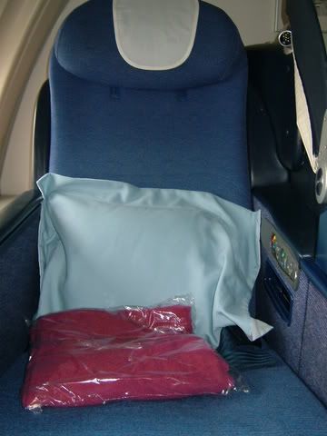 i was in the airport in the evening. and i was being upgraded from the economy class to the better business class. i had a 180 degrees flat bed. and during the flight, i slept for 2 hours! there was so much of food to eat. i was so full. they had a 3 course dinner. and unlike the economy class, they served the salad, main course and desert one by one. my long bed was 4 windows worth.